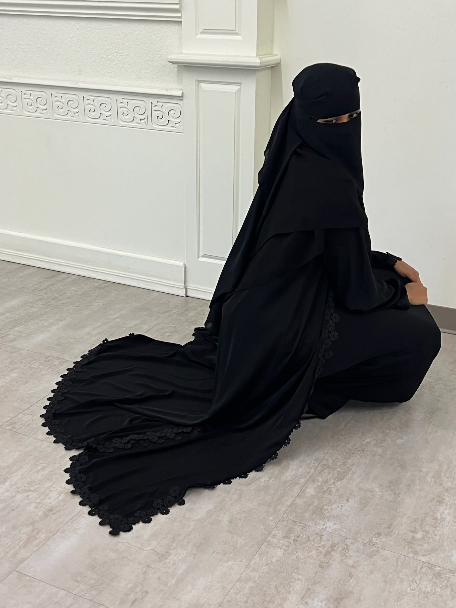 Elevate your wardrobe with this elegant 3-piece black lace abaya set, designed for both comfort and sophistication. Featuring delicate lace accents that enhance its timeless silhouette, this abaya provides modest coverage while allowing subtle detailing to shine. The coordinating pieces create a cohesive look perfect for formal occasions or refined everyday wear, ensuring you step out with confidence and style. Crafted with quality fabrics, this ensemble balances modesty and elegance seamlessly.
